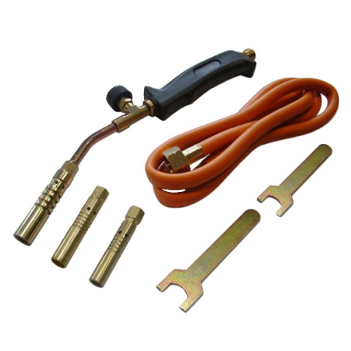 Mały, poręczny palnik na gaz propan-butan do lutowania, rozmrażania, suszenia, opalania i obkurczania. W komplecie znajdują się dysze do lutowania 13mm, 14mm i 17mm, wąż gazowy 1,5m, rękojeść z zaworem regulacji płomienia. Przystosowany do zasilania z dużych butli. Zasilanie z butli turystycznej możliwe jest po zastosowaniu redukcji.