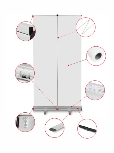 - Dodatkowy stabilizator miejsca mocowania masztu i tylnej ścianki - roll-up stoi idealnie prosto.