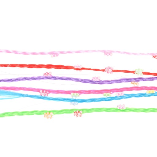 Dopinka miękkich, lśniących i kolorowych włosów zawiązanych w drobny warkoczyk.