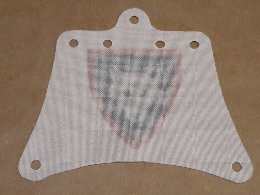 Nowy customowy ( moje własne wykonanie i projekt ) Żagiel nr. ŻMBW1 do zestawów LEGO Castle Wolfpack . Tkanina jest usztywniana i zabezpieczana przed strzępieniem się .