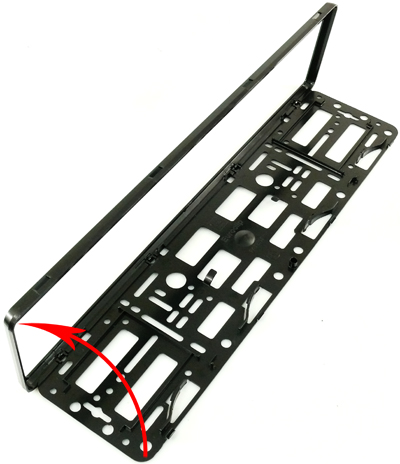 - Stelaż ramki posiada sprężyny umożliwiające bardzo dobre mocowanie tablic rejestracyjnych o różnych wysokościach (108 mm - 117 mm).