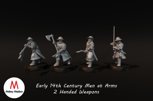 Early 14th Century Men at Arms with 2 Handed Weapons - 4x - Usługa Druku 3D Figurki do RPG lub Gier Bitewnych