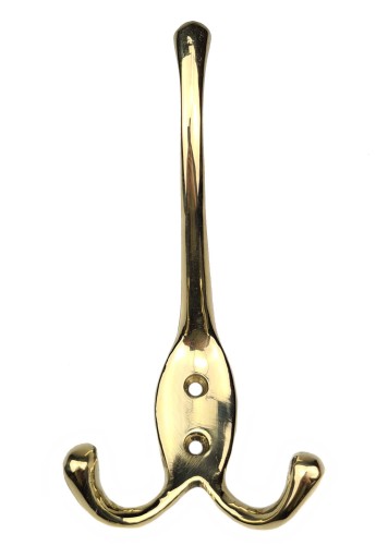Elegancki wieszak został wykonany z mosiądzu. Wieszak wysokiej jakości produkowany w Polsce. Posiada 2 małe haczyki na ubrania + 1 duży na którym możemy zawiesić płaszcz lub kurtkę.