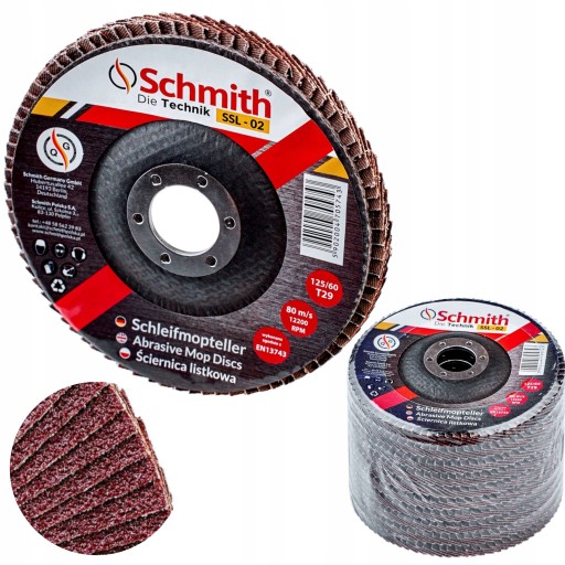 Ściernica listkowa talerzowa wykonana jest z listków (lamelek), z płótna ściernego z ziaren lub korundu nałożonych równomiernie wachlarzowato na korpusie z włókna szklanego. Takie ułożenie gwarantuje zwiększoną wydajność i elastyczność pracy.