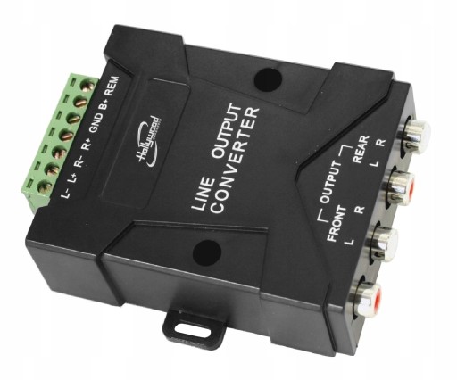 Wysokiej jakości 2-kanałowy konwerter obniżający sygnału głośnikowy z radioodtwarzacza do poziomu wejść RCA dla zewnętrznego wzmacniacza. Umożliwia podłączenie radioodtwarzacza, który nie posiada wyjść RCA (CINCH) do zewnętrznego wzmacniacza mocy. Konwerter posiada 4 wyjścia RCA, płynną regulację poziomu sygnału wyjściowego, wyjście Remote dla wzmacniacza oraz filtr zakłóceń z separacją składowej stałej (DC).