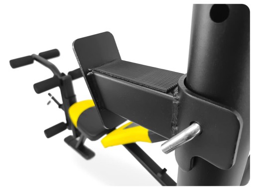 Możesz także zapomnieć o potykaniu się o pozostawione na podłodze nieużywane obciążenia, gdyż ławka została wyposażona w specjalne trzpienie od ich odkładania.