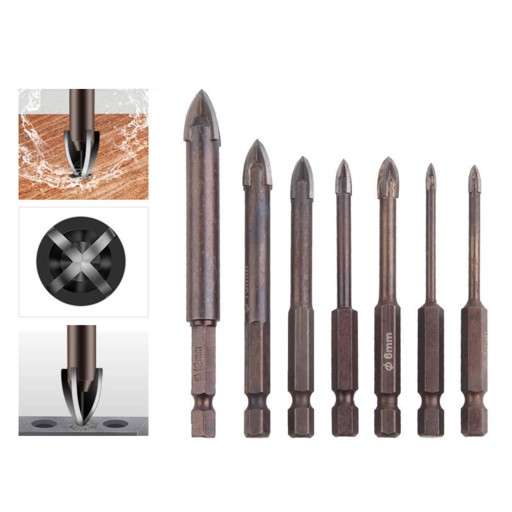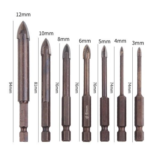Zestaw 7 Wierteł Do Kamienia Wydajny Chwyt 6,35 Mm Do Ceramiki Z Lustrem Drewna