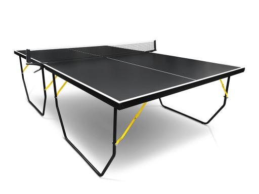 Blat stołu posiada wymiary olimpijskie tj. 152,5 x 274 cm, a jego grubość wynosi aż 16 mm. Blat dodatkowo jest wzmocniony metalowym profilem co znacznie go usztywnia.