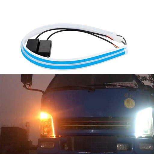 Funkcje: - Szybki czas reakcji włączania / wyłączania - Dwukolorowa taśma LED z funkcją przełączania w kolorze ice blue lodowego błękitu / bursztynu - Bardzo elastyczne, dzięki temu można tworzyć dowolne kształty, tak aby pasowały do reflektora - Światła drogowe DRL i kierunkowskazy - działają jako światło do jazdy dziennej – światło lodowy błękit i jako kierunkowskaz - bursztynowy - mega mocne jasne świtało dające doskonałą widoczność na drodze - Przyjazny dla środowiska, energooszczędny, odporny na wstrząsy, wodoodporny i odporny na wibracje -Uniwersalny, do wszystkich pojazdów DC12V Można stosować również jako: światła podłogowe, światła pedałów, światła hamowania, światła bagażnika, światła drzwi itp.
