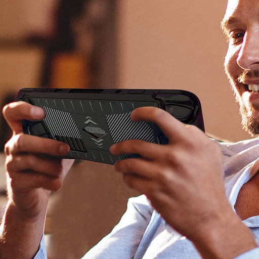 采用特殊放置的凹口设计,不会有端口或按钮被外壳挡住,因此所有 Steam Deck 功能都可以不间断地使用。蒸汽甲板后面的孔完美解决了散热问题。