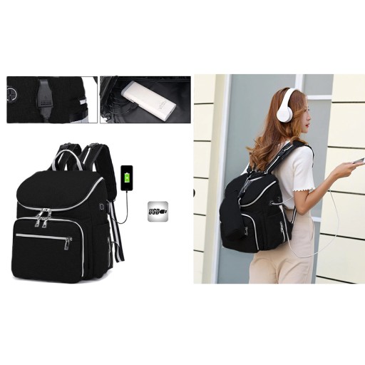 Wewnątrz torby znajduje się niewielka kieszeń zamykana na zamek błyskawiczny z portem USB na zewnątrz, w której możesz umieścić Power Bank do ładowania telefonu. Dzięki kieszeni Twoje urządzenia będą bezpieczne i zawsze pod ręką, a ty będziesz cieszyć się naładowanym telefonem w każdej chwili. W zestawie znajduje się kabel przedłużający USB o długości 60cm. Dodatkowo obok portu USB znajduje się otwór słuchawkowy.