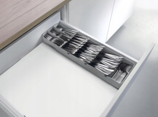 Regulowany wkład na sztućce do szuflady to idealne rozwiązanie na uporządkowanie sztućców czy innych drobnych akcesoriów kuchennych.