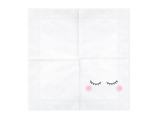 Serwetki papierowe Buźka w kolorze białym, wymiary po rozłożeniu ok. 33 x 33 cm, wymiary po złożeniu ok. 16,5 x 16,5 cm.