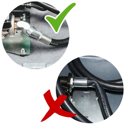 Zbiornik Profesional wyposażyliśmy w przegubowe obrotowe kolano, które zapobiega skręcaniu i załamywaniu się węża ułatwiając tankowanie. Zdjęcie górne (kolano przegubowe) zdjęcie dolne (przyłącze zwykłe).