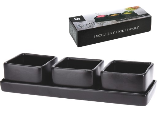 - Zestaw 3 kamionkowych miseczek, na podłużnej kamionkowej podstawie, która ułatwia ich serwowanie