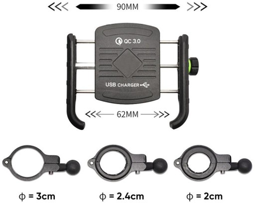 Uniwersalny aluminiowy uchwyt motocyklowy z ładowarką USB QC w kolorze czarnym
