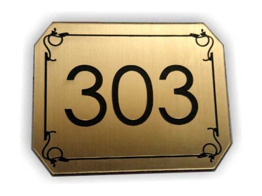 Numerek wykonujemy techniką grawerowania laserowego na wysokiej jakości laminacie grawerskim o grubości 1,6 mm