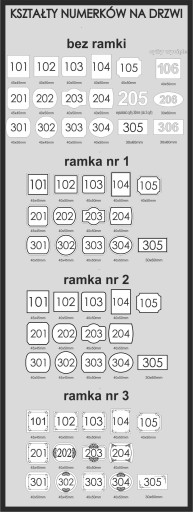 Wymiary podane są we wzorniku w zależności od wybranego kształtu numerka.