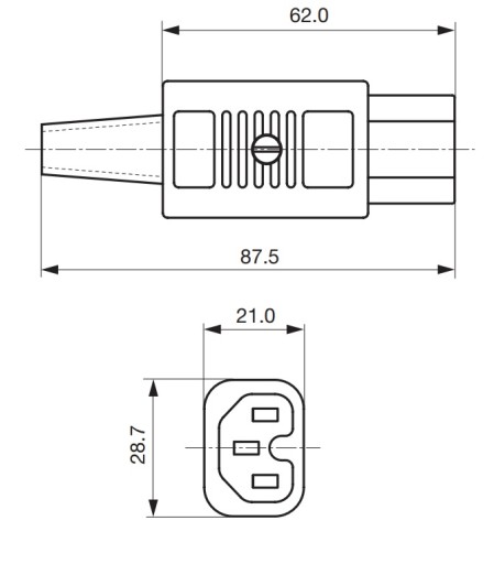 Bardzo dobrej jakości wtyk IEC stosowany do konfekcji kabli zasilających.