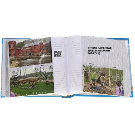Na stronie mieszczą się dwa zdjęcia w układzie poziomym wsuwane w kieszonki foliowe umieszczone na papierowych kartach.