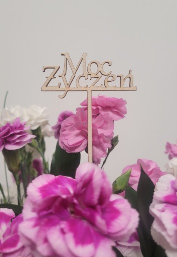 Piker ze sklejki z napisem "MOC ŻYCZEŃ"