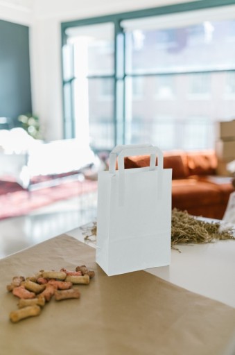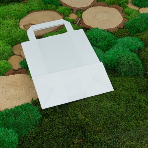 Torby papierowe z uchwytem płaskim dostępne są w kolorach brązowym (szarym), oraz białym
