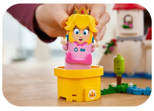 Zestaw Zamek Peach — zestaw rozszerzający (71408) pozwala dzieciom wzbogacić swój świat LEGO® Super Mario™ o dobrze znany poziom. Razem z interaktywnymi figurkami LEGO® Mario™, LEGO® Luigi™ lub LEGO® Peach™ (figurki nie są częścią zestawu) gracze mogą zwiedzić nowe miejsce i zbierać cyfrowe monety na wiele sposobów. W zestawie są sala tronowa z obracającą się ścianą, za którą chowa się Bowser, witraż z wizerunkiem Peach, obraz ze znacznikiem akcji przedstawiający Bob-ombę, ciasto z Goombą w środku, specjalna rura zamku Peach, blok czasu, „uszkodzony” most, miska owoców z fioletowym owocem i nie tylko. (Uwaga: do interaktywnej zabawy wymagany jest zestaw startowy 71360, 71387 lub 71403).