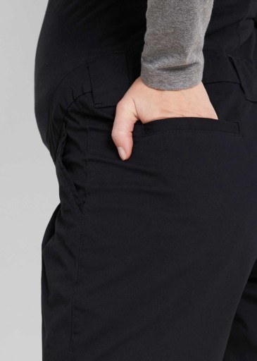 Spodenki z kolekcji Bon Prix, kolor CZARNY jak na zdjęciach, z elastycznym pasem na brzuch, z kieszeniami i szlufkami. Wewnątrz gumka do regulacji obwodu.