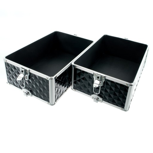Walizkę podzielono na cztery części - Górna część jest otwierana od góry, posiada cztery rozsuwane szufladki na lakiery lub drobne akcesoria, dwie identyczne środkowe części na większe przedmioty oraz duża komora, która pomieści większość dostępnych lamp do manicure oraz wiele innych urządzeń.