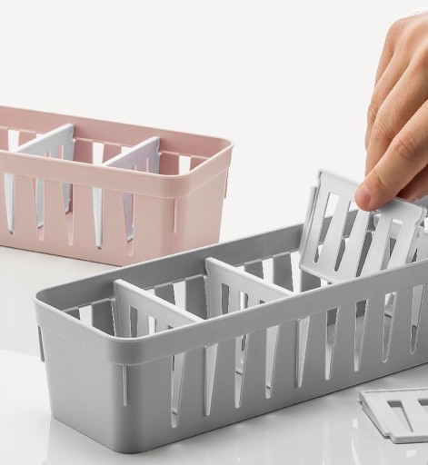 Organizer plastikowyto niezbędnik w każdym domu. Został wykonany z najwyższej jakości tworzywa sztucznego. Posiada 5 wyciąganych przegródek, które pozwolą uporządkować Ci skarpety, biżuterię, kosmetyki czy inne drobiazgi. Dzięki przekładanym przegródkom, możesz organizer dostosować bezpośrednio do swoich potrzeb. Jego prosta budowa sprawia, że organizer ma uniwersalne zastosowanie. Klasyczny wygląd sprawia, że nada się on zarówno do szuflady lub jako element dekoracyjny na półce.