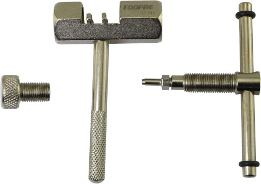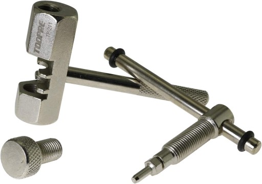 Skuwacz rozkuwacz do łańcucha rowerowego, przeznaczony do napędów 7,8,9,10 rzędowych. Wyposażony w śrubę stabilizującą łańcuch w trakcie rozpinania.
