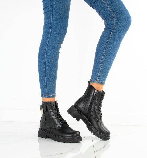 Stylowe botki damskie typu glany z antypoślizgową podeszwą, idealne na jesień i zimę. Zapięcie na suwak, dodatkowo sznurowanie z przodu buta.