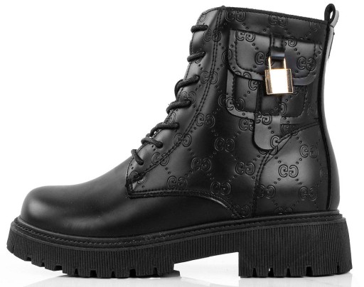 Stylowe botki damskie typu glany z antypoślizgową podeszwą, idealne na jesień i zimę. Zapięcie na suwak, dodatkowo sznurowanie z przodu buta.
