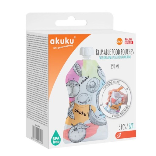 AKUKU WIELORAZOWE SASZETKI TUBKI NA MUSY POKARM x5