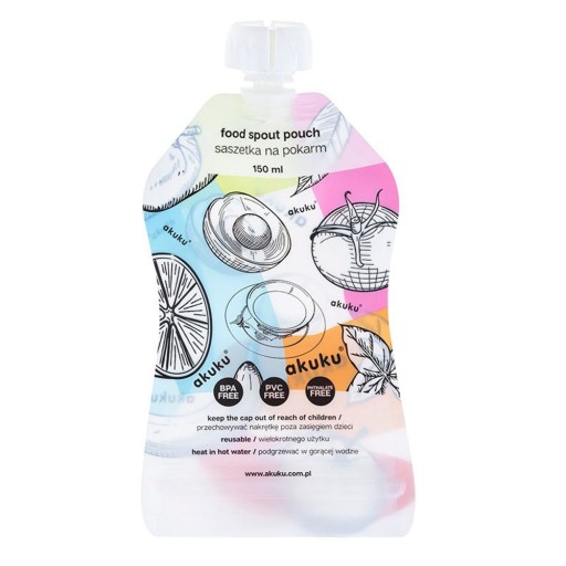 Saszetki „akuku” to świetne rozwiązanie dla mam, które same przygotowują swojemu dziecku musy, jogurty, zupki itp. Doskonale sprawdzą się w domu oraz na spacerze lub w podróży. Dzięki naszym saszetkom wielokrotnego użytku, dostarczysz maluszkowi najlepsze produkty wykonane przez Ciebie i zapewniasz zdrowe odżywianie. Posiadają one podwójne strunowe zamknięcie zabezpieczające przed wylaniem się zawartości. Są bardzo łatwe w napełnianiu, myciu i przechowywaniu.