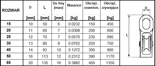 BLOCZEK DO LINY POJEDYNCZY 15 MM