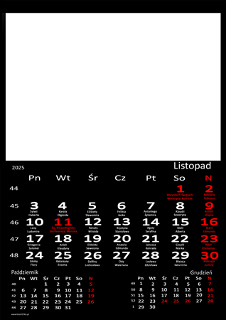 fotokalendarz biurkowy CZARNY - Twoje zdjęcia Oznaczone święto WIGILIA