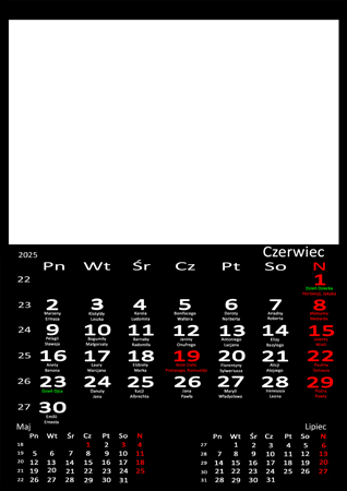 Wszystkie strony kalendarza (w białe miejsce wmontujemy Twoje zdjęcie):