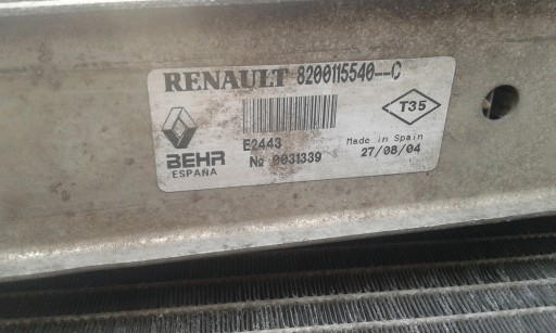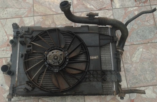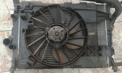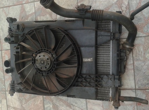 Chłodnica wody + chłodnica klimatyzacji + chłodnica powietrza / intercooler 8200115540C + wentylator Renault Megane II / Scenic II 1,5 1,9 DCI - (stan jak na foto - części sprawne, chłodnica szczelna) - wersja europejska.