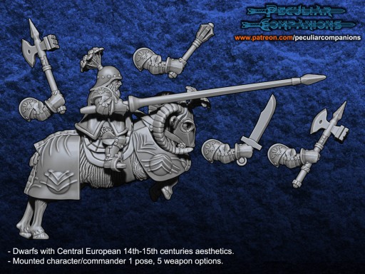 Breton Dwarfs - Mounted Commander - Usługa Druku 3D Figurki do RPG lub Gier Bitewnych