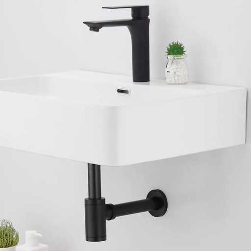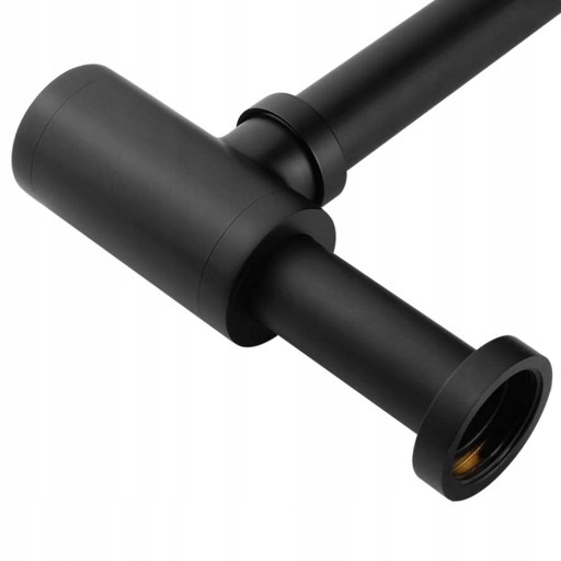 Wysokiej klasy regulowany syfon umywalkowy butelkowy wykonany z mosiądzu pomalowanego proszkowo na kolor czarny.