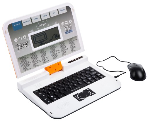 Ten edukacyjny laptop ma możliwość ustawienia języka (polski/angielski) i zawiera 120 zadania (po 60 w każdym języku) zadania matematyczne, muzykę, ćwiczenia pamięciowe, gry i zegar.