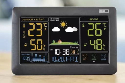 Czy sprawdzasz prognozę pogody za każdym razem, gdy wychodzisz z domu? Zastanawiasz się, w co się ubrać? W takim razie czas zaopatrzyć się w niezawodną domową stację pogodową E0387, która sprosta wysokim wymaganiom i stanie się niezastąpionym pomocnikiem w Twoim domu! Wyposażona jest w kilka mniej powszechnych funkcji, takich jak wyświetlanie fazy księżyca, animowane wyświetlanie poziomu wilgotności czy pomiar i rejestracja wartości ciśnienia.