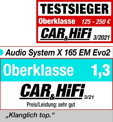 Zestaw otrzymał wyróżnienie podczas testów w branżowej prasie "CAR & HIFI" pod względem świetnego stosunku jakości do ceny w klasie średniej.