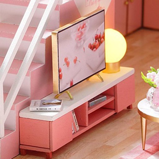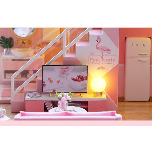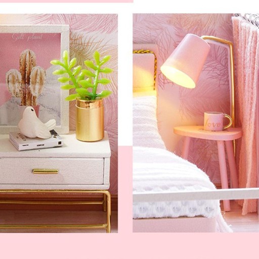 1/24 Drewniany Dla Lalek Dla Majsterkowiczów Sypialnia Różowy W / LED Ręczne