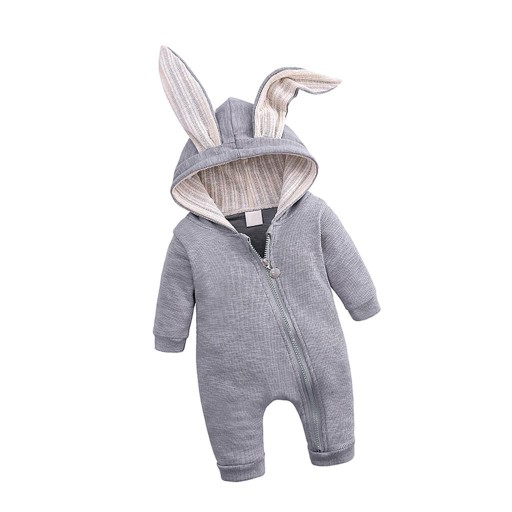 Bawełniany kombinezon wspinaczkowy Big Ear Bunny Zipper Szary (9-12 miesięcy)
