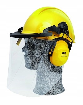 - Oprócz hełmu wyposażony jest także nauszniki oraz specjalny wizjer 3M™ V4KK, dzięki czemu jego używanie w żaden sposób nie ogranicza pola widzenia oraz umożliwia komfortową pracę.