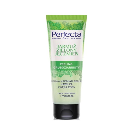 PEELING GRUBOZIARNISTY złuszcza martwe komórki naskórka, głęboko oczyszcza, odblokowuje pory i usuwa ze skóry nadmiar sebum. Pozostawia cerę idealnie wygładzoną.JARMUŻ I ZIELONY JĘCZMIEŃ – zapewniają skórze nawilżenie i odżywienie, wspierają jej funkcje ochronne oraz chronią przed wolnymi rodnikami.DROBINY PEELINGUJĄCE – z ryżu, złuszczają martwe komórki naskórka, usuwają ze skóry zanieczyszczenia i nadmiar sebum, intensywnie wygładzają.D-PANTHENOL – koi, łagodzi podrażnienia skóry i nawilża.