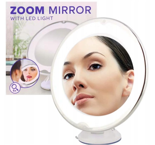ЗЕРКАЛО СВЕТОДИОДНОЕ ЗЕРКАЛО С ПРИСОСКОЙ УВЕЛИЧЕНИЕ 5-кратное ЗУМИРОВАНИЕ