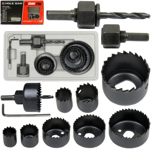 Solidny materiał wykonania. Otwornice z adapterem z centrującym wiertłem, w kształcie cylindrów z ząbkami. Hartowana stal narzędziowa, z której wykonano otwornice, gwarantuje ich długą żywotność i precyzję.